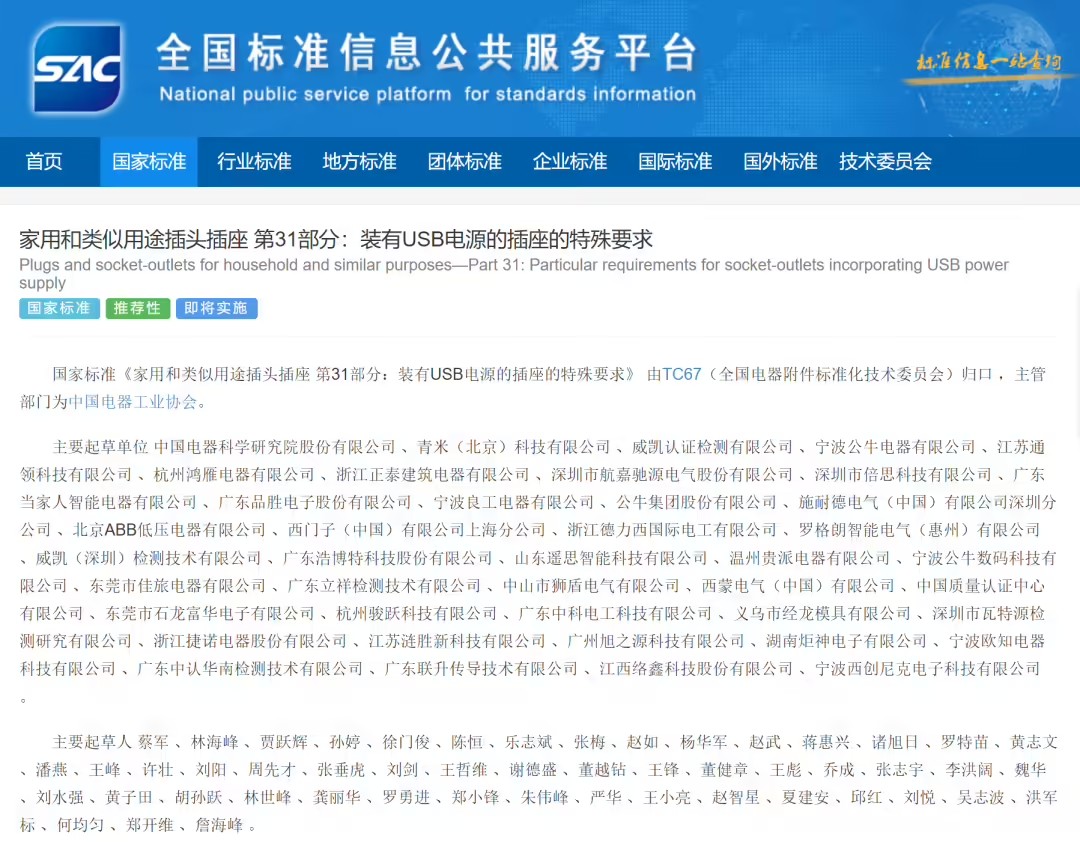 GB/T 2099.31-2025《家用和類似用途插頭插座 第 31 部分:裝有 USB 電源的插座的特殊要求》作為 GB / T 2099 標(biāo)準(zhǔn)新增內(nèi)容,針對集成 USB 接口插座制定了專項技術(shù)規(guī)范。