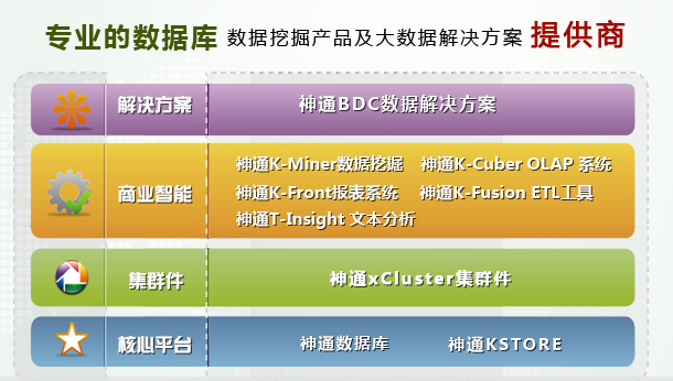 神舟通用公司主營業(yè)務(wù)主要包括神通關(guān)系型通用數(shù)據(jù)庫、神通KStore海量數(shù)據(jù)管理系統(tǒng)、神通xCluster集群件、神通商業(yè)智能套件等系列產(chǎn)品研發(fā)和市場銷售;诋a(chǎn)品組合,可形成支持交易處理、MPP數(shù)據(jù)庫集群、數(shù)據(jù)分析與處理等解決方案。公司擁有40余名實(shí)戰(zhàn)經(jīng)驗(yàn)豐富的中高級數(shù)據(jù)庫技術(shù)服務(wù)人員,可提供數(shù)據(jù)庫系統(tǒng)調(diào)優(yōu)和運(yùn)維服務(wù)。公司客戶主要覆蓋政府、電信、能源、交通、網(wǎng)安、國防和軍工等領(lǐng)域,率先實(shí)現(xiàn)國產(chǎn)數(shù)據(jù)庫在電信行業(yè)的大規(guī)模商用。